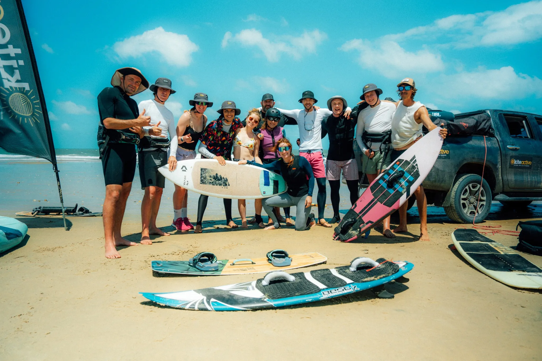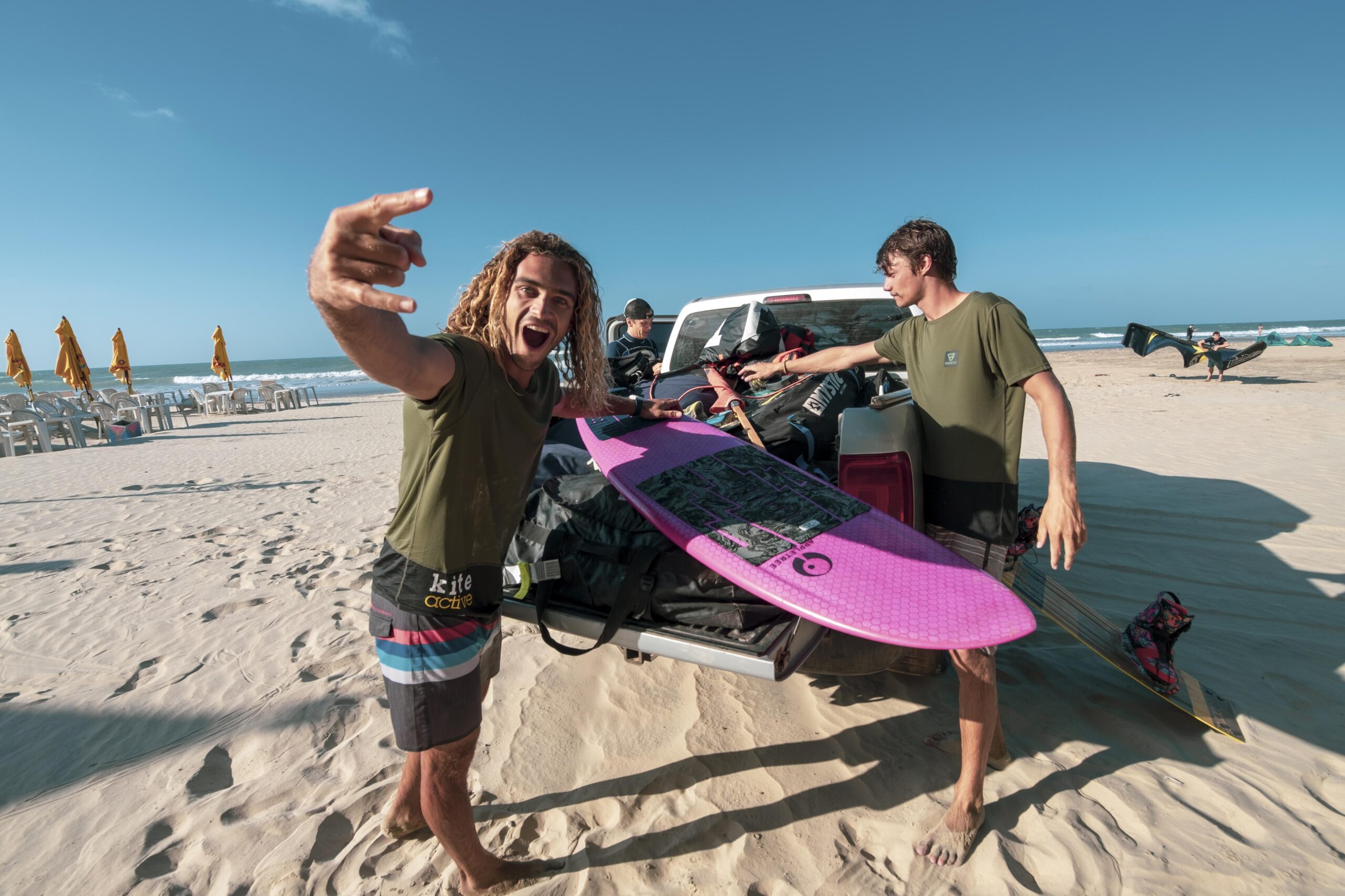 We hop in the 4×4 to nearby lagoons or send a proper downwinder along the coastline towards Tatajuba. The wind is now at full power—the prime time for Big Air filming and coaching moments.
