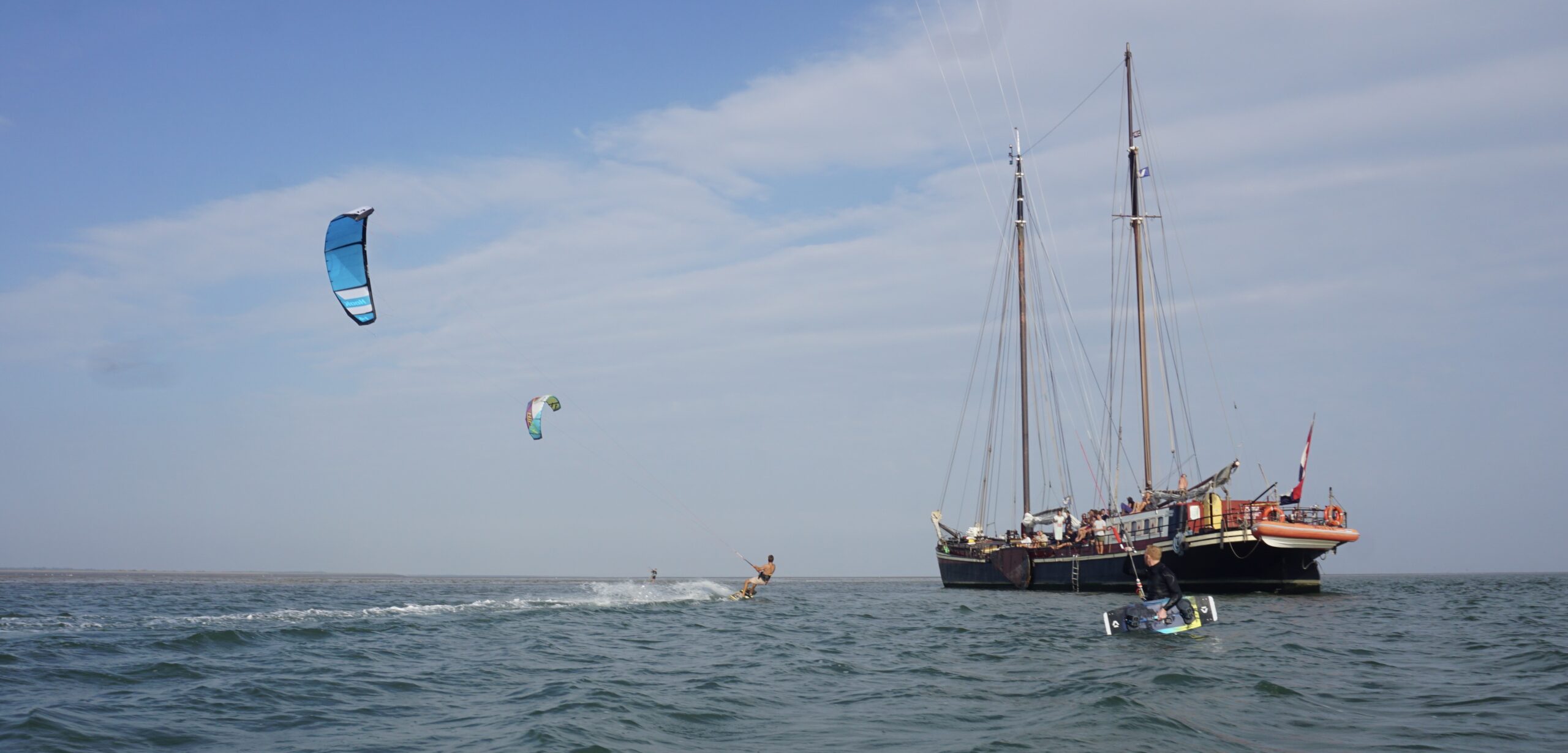 Werelderfgoed de Waddenzee. Een unieke kitesurfervaring! Ontdek de mooiste kitespots van Europa met een traditionele zeilklipper. Samen met schipper Roel gaan wij op zoek naar de mooiste kitesurf spots van de Waddeneilanden. Kilometers uitgestrekte stranden met een prachtige branding en mooie, cleane golven. Als het getij uitkomt vallen we droog en kunnen we rond de boot kitesurfen in spiegelvlakke lagunes!